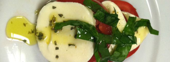 Fresh mozzarella with tomato, fresh basil, oregano and virgin olive oil.